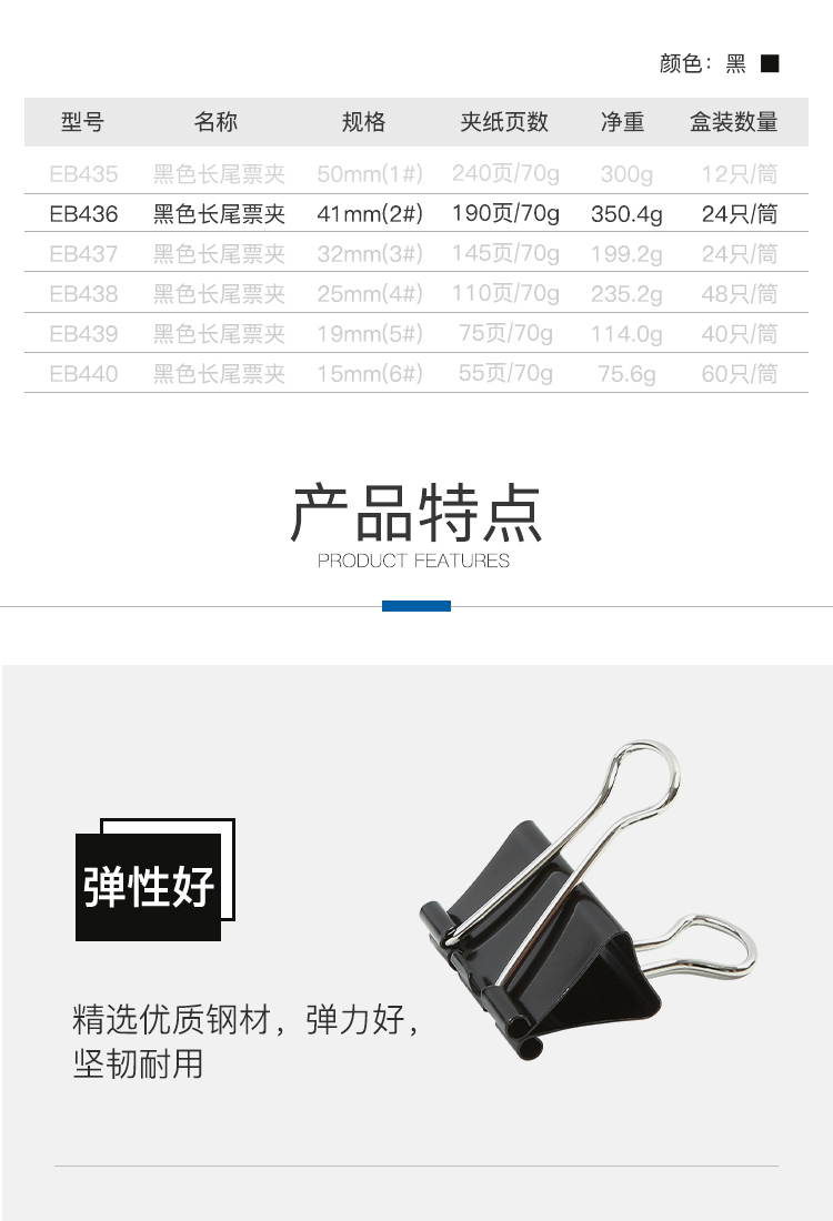 EB436 Comix EB436 long-tailed clip 2# 41mm 24pcs/set